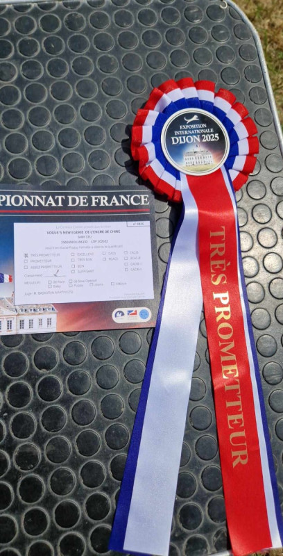 1 er très prometteur, meilleur puppy Shih-Tzu sélectionnée pour le meilleur puppy de l'exposition et meilleur paire de l'exposition avec sa sœur à l'exposition Cacs Brignoles 14 juin 2025 en classe puppy.